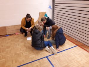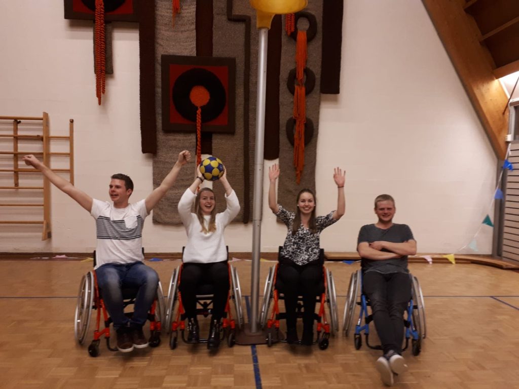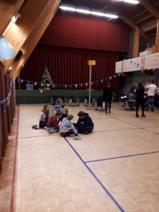 Na de griezelspeurtocht en het oliebollen eten gingen de senioren van start met het rolstoelkorfbal. Het was alweer de derde editie van het rolstoelkorfbal maar het blijft leuk en zal misschien nog wel weer eens georganiseerd worden.